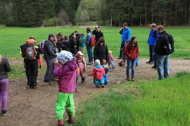 Kürzlich fand im Waldkindergarten Rottenburg der fünfte Familientag statt. Nach einem Begrüßungskreis am Hol- und Bringplatz führte der Weg zuerst zum Sonnenplatz. Dort angekommen, erklärte die Kindergartenleitung Maria Michel, dass dieser Platz im Frühling und Herbst dazu genutzt wird um nach grauen Tagen wieder Sonne zu tanken. Danach ging der Weg weiter hinunter zum Platz mit dem Namen Schmuckgeschäft, wo alle Eltern mit ein bisschen Geschick tolle Schmuckstücke für die Kinder bastelten. Es wurde gesägt, gebohrt und geknotet, bis die unterschiedlichsten Schmuckstücke an den Bäumen hingen. Da die Kinder schon ganz arg Hunger verspürten mußte kurzerhand die Brotzeit vorverlegt werden. Nach dem Händewaschritual suchten sich alle einen Sitzplatz um sich durch die mitgebrachten Köstlichkeiten zu stärken. Frisch gestärkt machten sich anschließend alle daran, am Stefansplatz ein tolles Lager für die Kinder aus Ästen zu bauen. Die Zeit verging wie im Fluge und nach dem Rückmarsch zum Bring- und Holplatz ging der tolle Familientag zu Ende.