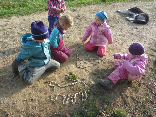 Der Tag wird durch täglich wiederkehrende „Rituale" gegliedert (Morgenkreis, Freispiel, gemeinsame Brotzeit, Abschlusskreis).
